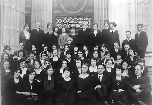 1921级、22级纽约州立图书馆学校学员与教员合影,第一排右三为袁同礼先生。