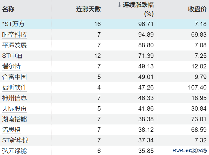 96只个股连续上涨5个交易日及以上96只个股连续上涨5个交易日及以上