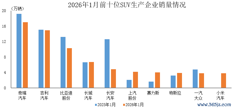 中汽协:1月销量排名前十位的SUV生产企业共销售73.4万辆中汽协:1月销量排名前十位的SUV生产企业共销售73.4万辆