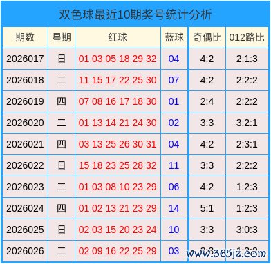 蓝球分析:最近10期蓝球号码奇偶比为4:6,其中偶数开出较多,最近10期蓝球号码012路比为2:5:3,其中1路开出较多。本期关注2路号码出号,预测14。